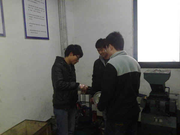作为首次交流活动,当天下午,程龙彪等同学在王亮老师的指导下,在研究所实验室制样室进行了煤粉坚固系数测定实验,此次实验让安全09-3班的同学们切身体会了煤矿科研的魅力,坚定了同学们从事科研工作的信念。