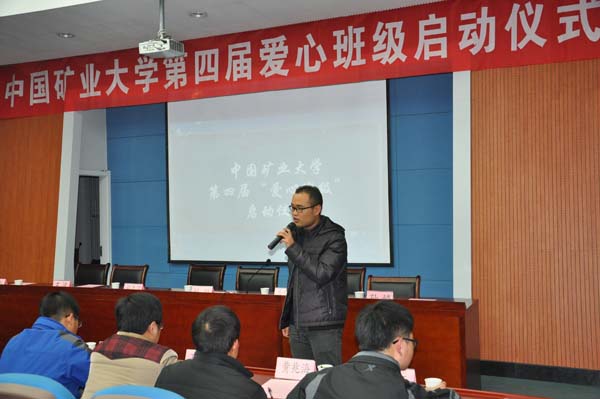 第四届“爱心班级”启动仪式在矿业科学中心A200圆满召开。安全学院党委副书记钱雄、学生工作处指导老师孟凡昌出席了本次仪式,管理学院辅导员杨忠习老师、安全学院辅导员孙婷老师等各学院辅导员老师以及爱心班级代表参加了本次启动仪式。本届爱心班级的主题是:真真切切献爱心,踏踏实实做志愿。