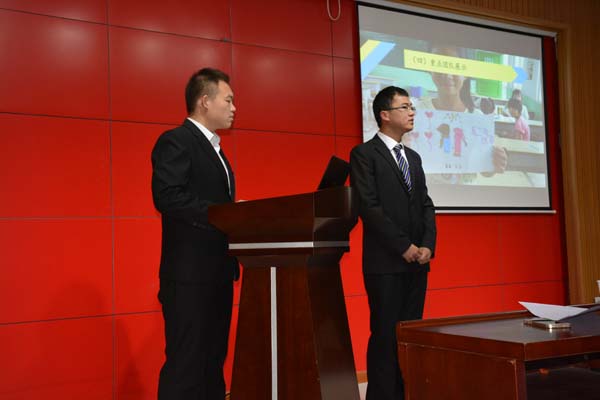 安全学院由袁野、鹿通两位同学作为代表参与了本次答辩。整个答辩过程主要分为展示自诉和评委问答两个环节。安全学院被安排在第二个出场。本次答辩安全学院真可谓有备而来。5分钟精彩的ppt演示简明扼要地将学院的社会实践策划、组织过程、重点团队情况以及取得的成果生动直观地展现出来。评委问答环节袁野同学更是有条不紊,对答如流。不仅准确清晰地阐明了学院的实践活动详情,更是将当代大学生那种落落大方、阳光自信的气度表现得淋漓尽致。赢得了在场评委和观众们的热烈掌声。