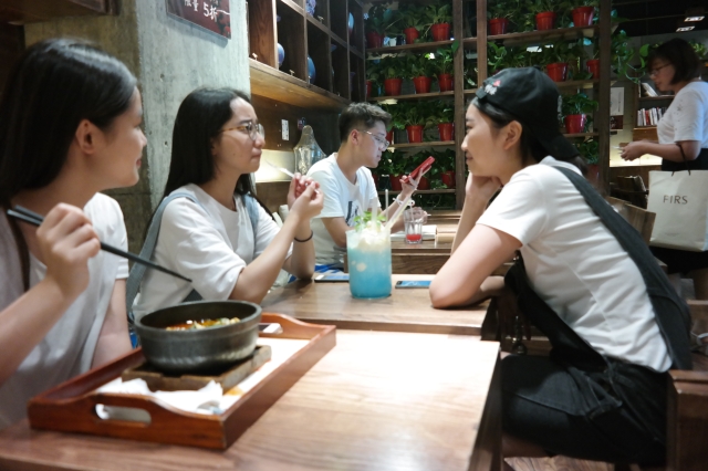 C吧准备摄影器材以及对取景点的选取,有条不紊的进行着准备工作,与此同时,结合到前两天的一些缺陷,例如路人过多影响拍摄等情况剧组人员先行进行了一次短小的会议,DREAM BIG 实践团的成员们对于微电影的拍摄越发驾轻就熟,并在早上九点正式开始了拍摄,不出意外地,拍摄进程一如既往的顺利,剧组人员都表示达到了自己所预想的理想效果,不出两个小时,剧组人员结束了C吧的第五幕。紧接着剧组人员马不停蹄的赶到了韩国三级