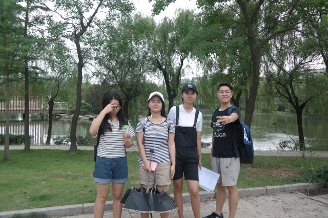 南湖校区进行拍摄,第一天的取景主要针对在图书馆和教学楼,拍摄过程由早上九点持续进行到了下午五点,拍摄过程中一直出现一些以前没有预料到的问题,例如路人路过影响拍摄或者演员背不住词等等突发情况,但是团队成员们也在问题中更加了解到拍摄的必要过程,拍摄进程也愈发顺利。实践团的成员们还在拍摄过程中为自己的角色设定进行了深入的剖析,对剧情进行了一定的加入和修饰,旨在给大家带来更加贴近于大学生活的电影,从而达到更好的传播效果和教育意义。下午五点,最后一幕的拍摄结束为第一天的实践划上了句号,成功完成了第一天的拍摄任务。