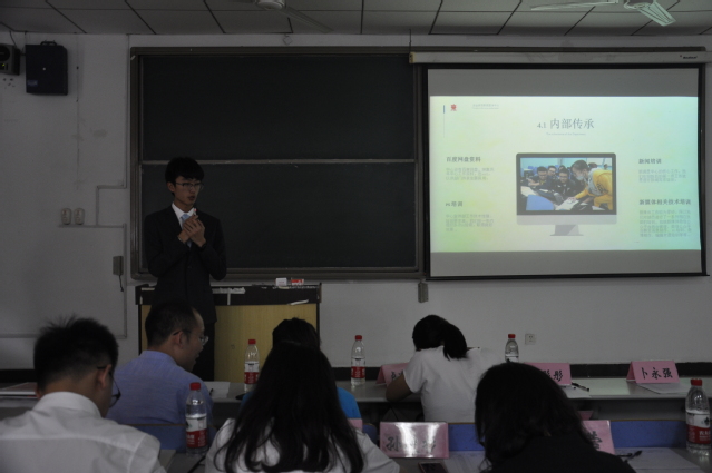 下午4点,安全学院代表上场参与答辩,刘胤甫作为主讲人从组织构架、基础工作、创新工作和展望未来四个方面向大家介绍了安全学院新闻宣传中心在这个学年里的工作成绩以及最终所取得的成就,他系统地阐述了安全学院新闻宣传中心在新闻采写、自办刊物、宣传海报制作、新媒体推送上取得的成果,以及对于干事新闻素养提升和各种技能培训的心得。在答辩环节中,安全学院代表们以简洁的语言,高度精炼的概括回答了评委老师提出的有关工作特色、PS培训等方面的问题,获得了评委老师以及同学的一致肯定。