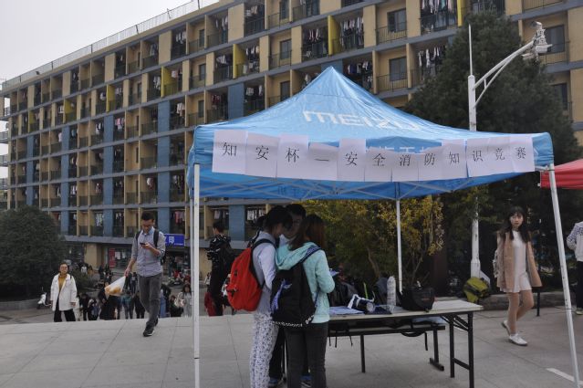 知安杯安全消防知识竞赛的宣传活动。安全学院创新创业中心和公益志愿中心组织的相关成员及部分志愿者组织并进行了此次宣传活动。