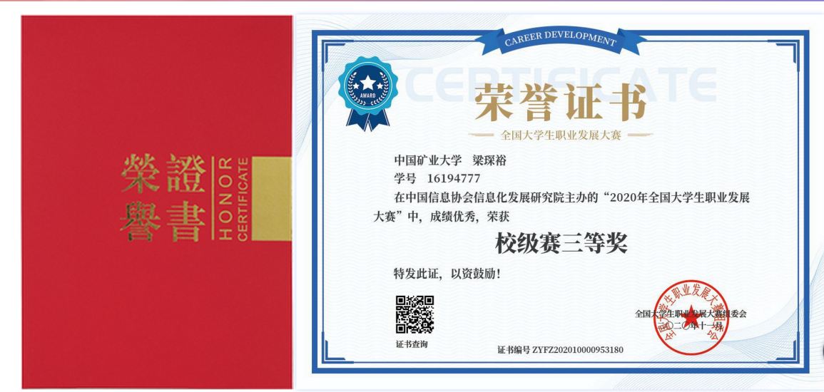 团委学生会新闻宣传中心部长,19级国际班班长。我学习成绩优异,大一学年综合素质测评成绩为1/183,获得国家奖学金,获得“瓦斯-好学”奖学金,三次获得韩国三级
