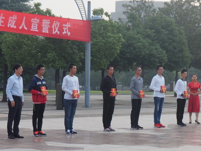 在新生成人仪式上,校党委副书记曹德欣向各位新生赠送宪法读本,安全学院代表向学院在场同学分发宪法读本。随后,安全学院17级同学们在新生代表的带领下,左手执宪法读本,举起右拳在国旗下庄严宣誓。“遵守宪法和法律,热爱社会主义社会,拥护中国共产党的领导,正确行使公民权利,积极履行公民义务”,仪式在同学们庄严嘹亮的宣誓声中落下帷幕。