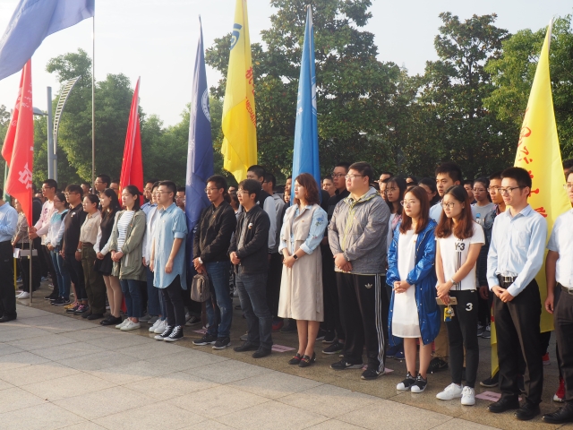 庆祝新中国成立68周年升旗仪式暨2017级新生成人宣誓仪式在东门国旗广场举行。安全学院团委书记孙婷、辅导员刘世通与校级先进班集体安全17-1班全体同学参加仪式。