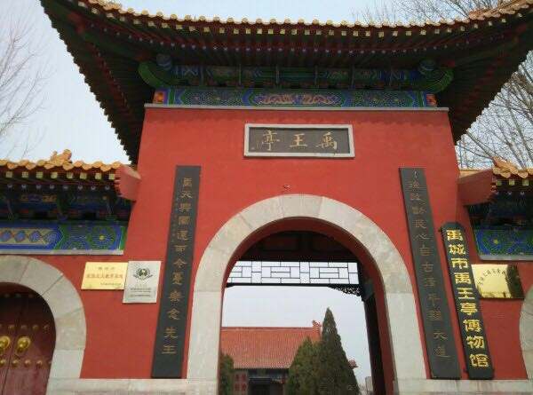 下午三点,团队成员抵达禹王亭博物馆。成员们拾阶进入山门,通过甬道后看见南端东侧矗立着一石碑,上面刻着重修禹王亭记碑文。院落北部东西两侧,各建古式配殿,甬道北端是禹王大殿。据旧志记载:“大禹治水时曾筑此丘,以观察水势”。明、清时于土丘上建禹王亭,后年久失修毁之,土丘上建筑物荡然无存,土丘之上现长满杂草树丛。1974年考古人员曾来此考察,发现有灰土层,并拣到单孔石铲、蛋壳残片、石斧、陶弹丸、陶纺轮等古代文物,经山东省博物馆鉴定,这些文物为龙山文化遗物,具丘属“龙山文化遗址”。