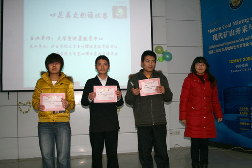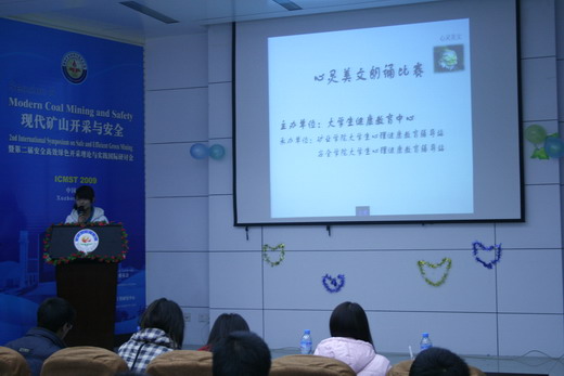 与矿业学院大学生心理健康教育辅导站合作承办的“心灵美文朗诵比赛”决赛于矿业学院A604成功举办。本次比赛特邀矿业学院健康教育指导老师曹薇、韩国三级