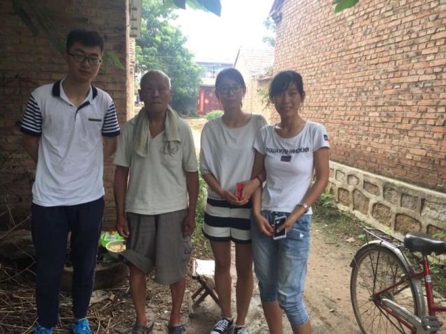 上午九时许,志愿者们到达叶克亮老前辈的家中。叶老前辈于1944年入伍,当时的他仅有14岁,属于司令部。叶老前辈说当时他家中兄弟姊妹比较多,爹娘不舍得,但是政府一直征兵,所以老前辈选择入伍。老前辈在部队时先后参加了抗日战争和解放战争,谈到印章最深刻的一场战役,老前辈说道:“当兵的情况想啥的都有。还有认为共产党是不能打胜的,共产党当时的枪支弹药人员都不咋地,都觉得打不赢。最后日本鬼子就被共产党消灭了,打下杨山那里,部队情绪都高涨起来了,一开始情绪都比较低落,都不知道共产党能打赢不,当时连我的思想也低落,觉得一辈子也回不了家了。”在部队时,生活很不好,吃的都是找老百姓,条件很艰苦,穿的都是粗布。老前辈在部队时脚踝被机枪子弹扫过,留下了一个疤,脸上被炮弹炸过,现在说话都语速很慢。采访结束,老前辈向志愿者们展示了抗战胜利70周年的纪念章并与志愿者亲切合影。
