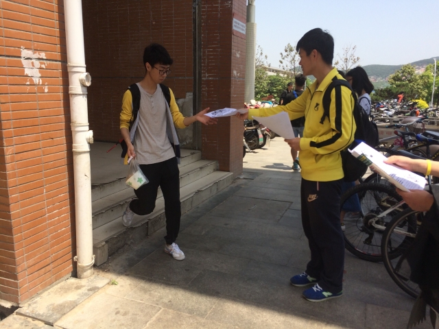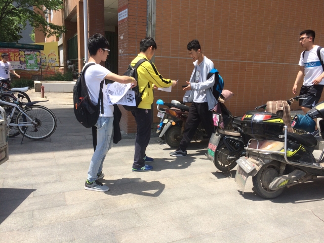 中午12 点,新宣干事来到三食堂广场,准备好宣传所需要的材料。接着,部长就对宣传的相关事宜进行了细致的讲解,宣传活动正式开始。干事们分别在三食堂的出口分发宣传单,并向同学们讲解了本次活动的主要事项,包括活动目的、活动主题、征稿要求、活动对象、活动事项等,鼓励同学们积极地参与到本次活动中来。面对同学们的疑问,干事们也进行了耐心的解答。活动现场气氛活跃,许多同学表示愿意到参与到此次活动中来