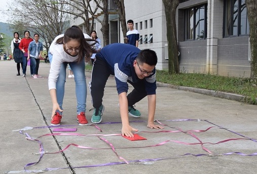 该活动以四人组队的形式闯关,队伍和队伍之间PK获取积分,积分高排名高,最终排名高着获胜。此次活动主要设为三大关卡,分别为文仙阁、武魂殿、艺灵泉。在这三个大的关卡中,又分别设立了三个小的项目。活动开始之前,工作人员耐心地为参赛选手介绍具体玩法和规则、为同学们分配任务,并再三强调同学们的安全问题,防止意外的发生。比赛开始后,各个小组来到指定地点完成他们的挑战。在挑战时,同学们分工合作,集思广益,配合默契。遇到困难之时,同学们相互鼓励,探究摸索,不断前进。各个小组争先恐后,随着一个个关卡被同学们突破,比赛也进入到了白热化的阶段。与此同时,同学们也不忘记安全问题,在撕名牌环节,男生们礼让三先,既表现了男生们的绅士风度,又保障了同学们的安全。