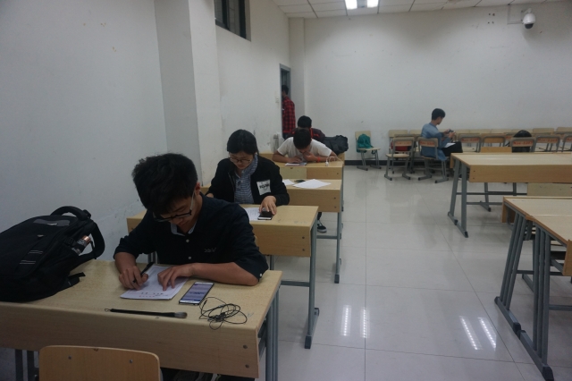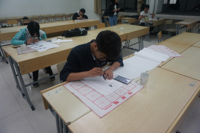 晚上7:00整,活动准时开始。不断有同学向B303教室送来自己精心创作的绘画作品和篆刻作品。来参加书法比赛的同学们在B304教室门口签到后进入B302、303、304教室进行现场软笔书法与硬笔书法的创作。参赛的同学们聚精会神、胸有成竹,有的挥毫泼墨,飘逸洒脱,有的一笔一画,力透纸背,有的气韵生动,入木三分。选手们采用的字体极为丰富,有刚正不阿的楷书、飘逸洒脱的行书、轻重有致的隶书还有古色古香的小篆等。一幅幅风格各异的作品都展现出了同学们对中华传统文化的向往与传承。现场的工作人员认真登记好参赛者们的个人信息和联系方式并将所有参赛作品分类整理好后将交由老师与书法协会投票,剩余作品的投票将在下周进行。