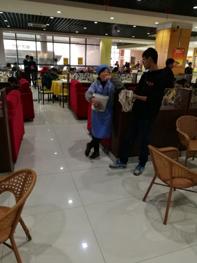 3月8日下午4点30分,由安全学院16-2班等六个爱心班级联合举办的“让食堂阿姨解放双手”志愿活动于桃苑餐厅、竹苑餐厅和梅苑餐厅陆续展开。