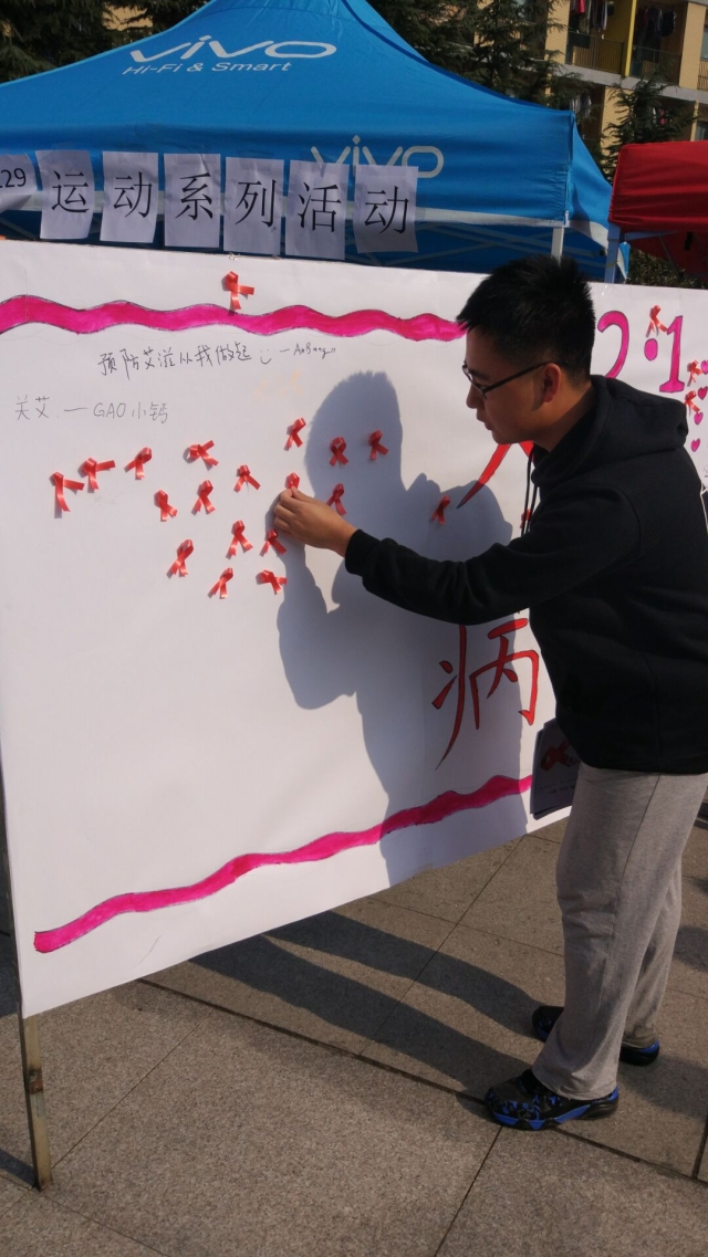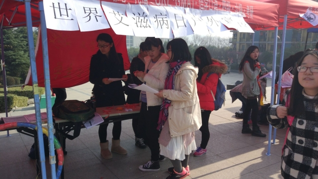 世界卫生组织于1988年1月将每年的12月1日钦定为世界艾滋病日,号召世界各国和国际组织在这一天举办相关活动,宣传和普及预防艾滋病的知识。今年的宣传主题是携手抗艾,重在预防。本次宣传共分为3个活动,首先是宣传的同学派发传单,其次让前来了解是签名并贴红丝带,最后一个环节是小游戏,转呼啦圈。许多同学对本次活动展现了极大的兴趣,纷纷阅读传单后签名并贴上红丝带。最后的小游戏也有许多人参加,给本次活动增添了不少乐趣。