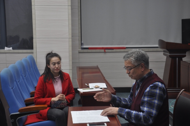 下午三点半,吾布力老师与部分同学提前到达会议室,用维语进行了交流。交流过程中,同学们针对学习与生活中遇到的问题对老师进行提问,老师也耐心幽默地进行了解答,气氛欢乐融洽。下午四点,见面会准时召开。首先,吾布力老师就内派教师工作的重大意义对同学进行讲解,强调做好内地新疆籍学生教育管理服务工作,就是做好新疆工作,是主动适应新疆特殊战略地位和作用,履行党和国家少数民族人才培养工作的重大使命。随后,简要说明了自治区党委首次召开南疆工作会议所提出的支持南疆发展的重要战略措施。会议中,吾布力老师严肃认真地强调了“两个不得”与“五个严禁”,深入做好校园“去极端化”工作,筑牢学生反分裂反渗透思想防线。最后,吾布力老师宣传了党的各项教育惠民政策,以理想信念教育为核心,让同学们增强对中华民族的认同鼓励大家加强民主法治、人文素质、团结协作教育,引导学生勤于工作、善于创造、甘于奉献,成为有理想、有道德、有文化、有纪律的社会主义接班人。