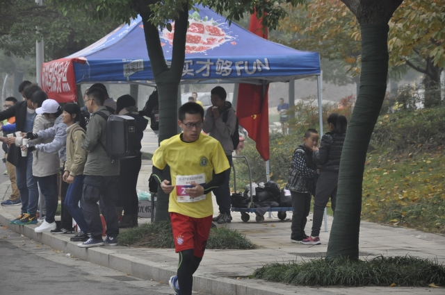 早上8点,运动员们纷纷到达图书馆门前进行赛前热身与跑道适应,各学院布置加油站、服务站为运动员们提供服务。上午八点三十分,随着起跑的枪声响起,比赛正式拉开帷幕,运动员们踏上辉煌的赛程。虽然赛程漫长,天气寒冷,但这一切并没有阻挡运动健儿们奔跑的步伐,比赛之中没有一个选手放弃比赛。不轻言放弃的精神征服了每个人,跑道两旁的观众大声呐喊为选手们加油。有的参赛选手大汗淋漓,脸被冷风吹得生疼,胳膊冻得僵硬,但他们都咬紧牙关坚持了下来,忍者疼痛和体力不支的劳累,全力跑完了马拉松。