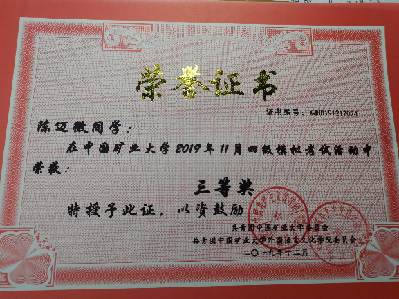 “四级模拟考试”三等奖。