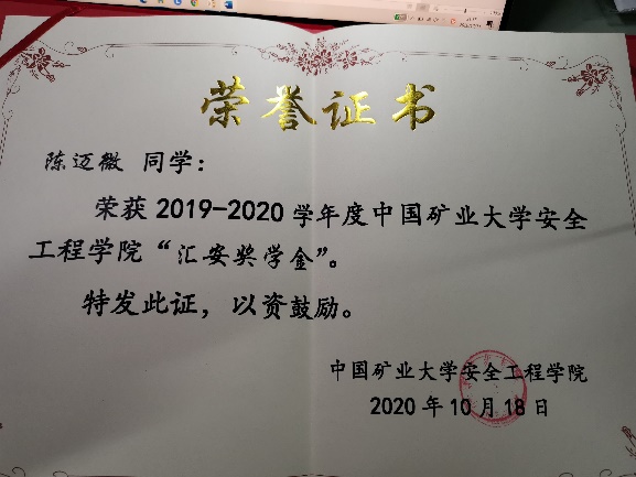 我获得2019-2020年国家奖学金,2019-2020年“汇安”企业奖学金,韩国三级