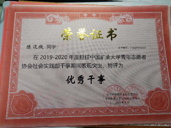 青年志愿者协会社会实践部,并获得了校级“优秀学生干事”荣誉。