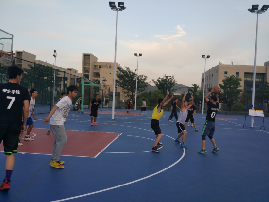 第六届研究生篮球赛季军争夺赛在桃苑篮球场展开,本场比赛由安全学院男篮对阵机电学院男篮。最终,安全学院以56:28大胜机电学院。