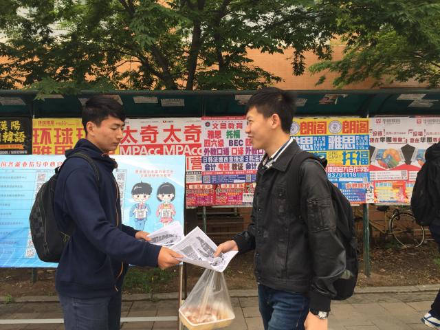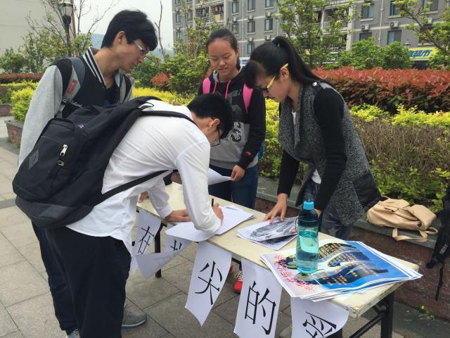 学业发展中心的部长薛乐及部分部员在三食堂广场准时开展宣传活动。宣传主要方式有:展示活动海报、分发活动传单、部员向路过的学生进行活动讲解。中午12点正是三食堂广场人流量较大的时间段,因此宣传活动进行顺利。所展示的彩色海报中绘制有:一只小企鹅依偎在父母的身边,使得过往同学睹物思人、思及父母之爱。学业发展中心的部员们在分发传单的过程中还向同学们介绍了“游走在指尖的爱”活动是鼓励大家说出对父母的爱的主题活动,并简述了参加此次活动不仅能将大家内心掩饰的爱倾情表达出来,还能提高语言表达能力和写作水平。此次宣传范围较大,基本囊括了在该时段经过三食堂广场的大部分学生。许多学生接受传单并表示考虑参加此次活动,有些同学当场即在宣传点进行报名,宣传活动进行顺利。12点半左右,宣传活动结束后,学业发展中心成员井然有秩地收拾了宣传点。