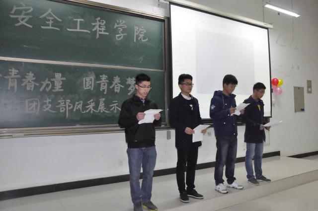 各团支部的青春风采,安全学院于4月6日在博二楼C-101举办了“汇青春力量,圆青春梦想”团支部风采展示活动。安全学院辅导员孙婷老师、何伟民老师、团委学生会主席崔杰、副主席常航、董齐齐以及武文杰参加此次活动,并担任评委。