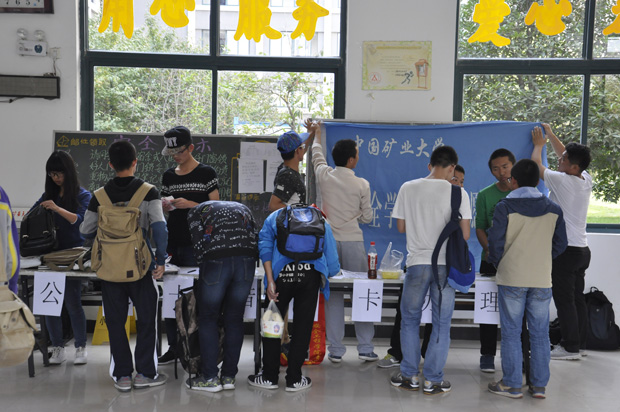 10月13日中午,校青协携手安全学院青协,在梅3宿舍1楼展开免费帮同学们代办公交卡及自行车卡活动。