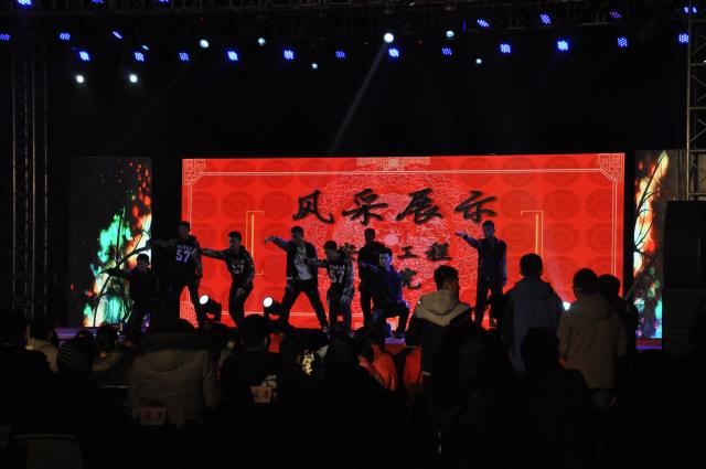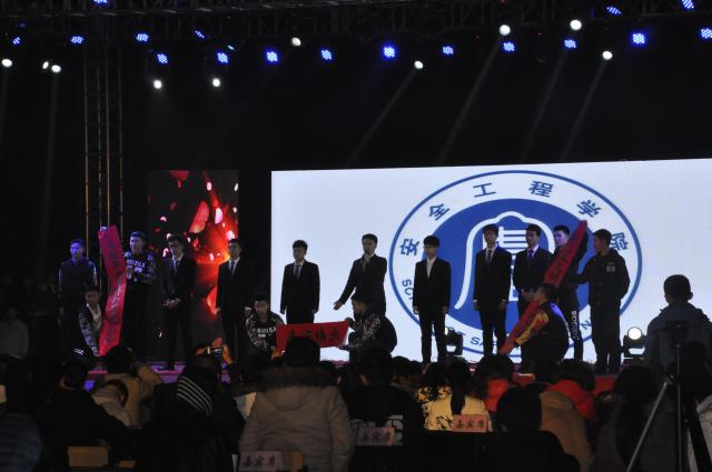 七点整,两段激情四射的舞蹈正式点燃全场。随后,校领导为年度获奖学生以及团体颁奖,肯定了他们在2015年中的付出与努力,并鼓励他们在新的一年中再接再厉。紧接着,一段性感火爆的拉丁舞又把严肃的气氛活跃起来,而舞空间的街舞更是让现场观众热血沸腾。各个学院的节目表演环节中,由八名英俊的学子组成的安全男团——Safemen为全场观众献上一段Trap舞蹈,他们整齐的舞蹈动作、跟随节奏灵活跃动的身体,舞出了安全学院的昂扬活力,舞出了安全学子的积极向上,场下观众掌声雷动。舞蹈结束后,安全学院主席团登台向全校师生送上新年祝福,并用一副对联迎接新年的到来。上联“迎新年四海祥和煦我安全行”,下联“庆元旦九州灯火通明消防保”,横批“安全矿大”。安全学院用两个专业的职能为特色,不仅呼应着此时此刻祥和热闹的佳节气氛,更淋漓尽致地展现出安全学院独特的专业魅力。