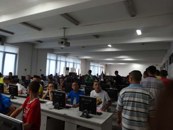参照通知单里的程序,新生们有条不紊地操作着各自的计算机进行答题。由于计算机不是高中必修课,新生的水平参差不齐,考场里,有的新生从容应答,有的新生则是一头雾水,但是考场依然秩序井然。