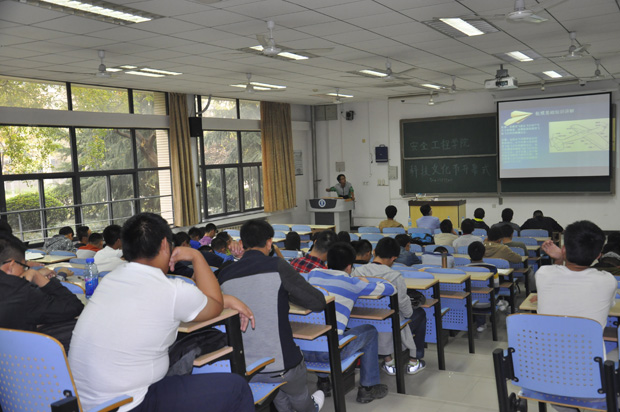 2点30分,讲座准时开始。首先,安全学院团委学生会主席兼科协主席崔捷向大家介绍了科研、创业、学术论文等方面的相关信息。之后,数模协会负责人介绍了数学建模的大体概况和建模理念,鼓励同学们开拓创新,积极参与;航模负责人则向同学们展示了一段飞行器试飞的视频,同学们的好奇心与积极性被纷纷调动;随后,机器人协会部门负责人又详细介绍了各方面机器人的相关资料,各个协会最后还分享了参赛经验与心得体会,同时展示了许多优秀的科研创新成果,现场科学文化气氛浓厚,同学们兴趣十足。讲座结束后,为使科协资源得到优化配置,科协进行了会员招新,强调其“倾科协资源,以培养同学科创方面的才能”的宗旨,而同学们根据自己的兴趣爱好,填写意愿部门并上交报名表。
