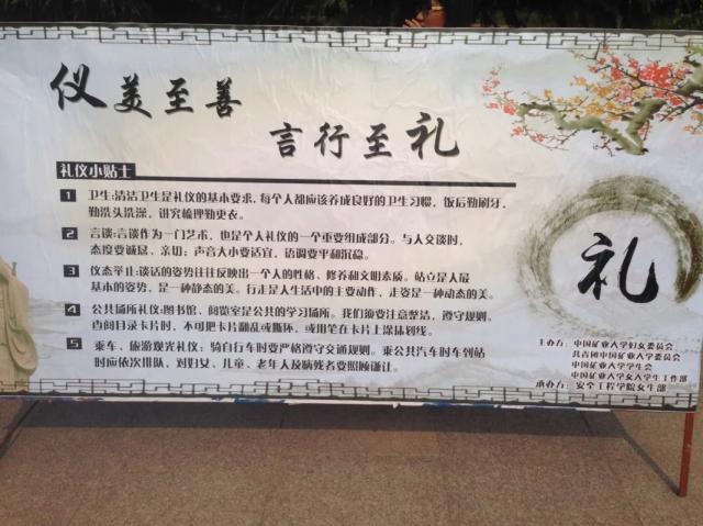 学生会与各学院学生会女生部于二食堂广场举行主题为仪美至善,言行至礼的校园礼仪文化月开幕仪式。