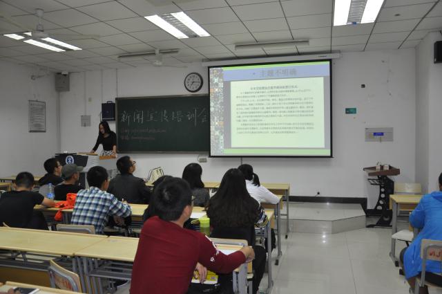 晚上六点,参加此次培训的所有成员到达指定地点,记者站站长贺子玲从新闻的格式、内容、篇幅等几个方面进行了说明,并且对近一个月的新闻进行了针对性地点评;然后就具体问题进行了举例说明,像“出席,顺利举办,圆满成功”等词汇应谨慎使用。接着指出照片中存在的问题并且做了详细的说明,这也是近一个月新闻采写过程中存在的最大的问题。会议末节,各部长对近期的工作做了相关的点评,并且鼓励中心的每一位成员要积极认真的工作,与此同时努力学习,争取工作学习两不误。培训会期间,部员们仔细听讲并且做了笔录。会后,部员与各部长就学习生活中的问题进行了密切的交流。