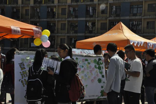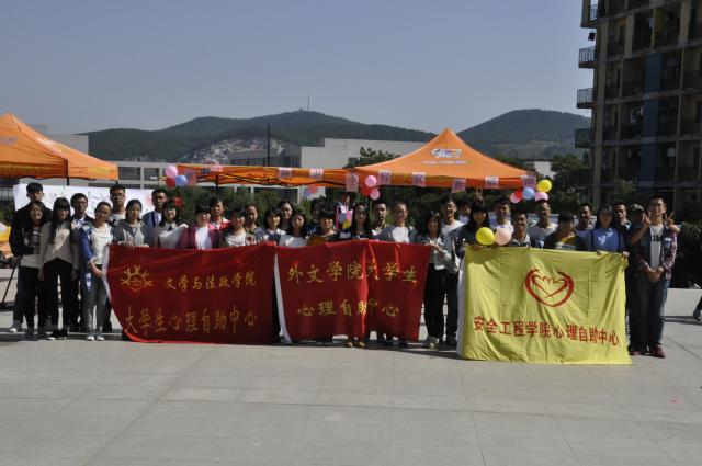 大学生心理自助中心联合文法与文法学院和外国语言文化学院的大学生心理自助中心于松苑食堂广场召开了的“世界精神卫生日”的宣传活动。
