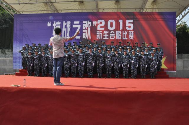 2015级“抗战之歌”红歌合唱比赛即将拉开帷幕,9月14日下午两点,全校19个参赛学院在东坡运动场参加了比赛彩排。