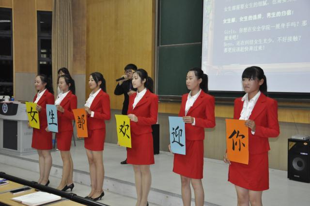 第一届礼仪队。并在学生会招新宣讲会上一展身姿,向全场师生展现了安全女生的风采与当代大学生的青春与活力。
