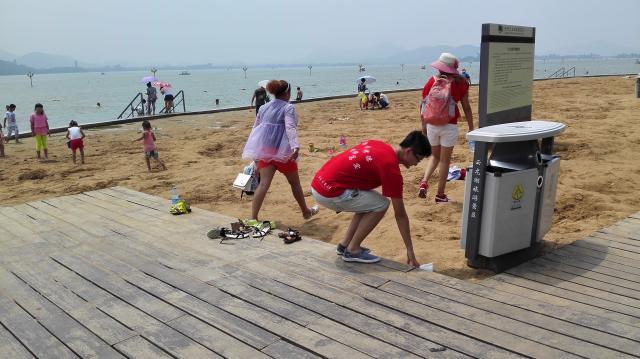 8月24日上午,“走向蓝天”社会实践团来到了云龙湖开展今天的社会实践,此次活动主要包含两个目,第一是向云龙湖周边的市民以及在云龙湖游览的游客宣传环保知识,第二是对云龙湖周边的环境进行卫生清理。上午8点整,“走向蓝天”社会实践团在云龙湖畔集合完毕,队长将实践团的成员按照每两个人一组进行分配,分组行动,力求能够实现最大程度的落实宣传目的。活动刚开始的时候,实践团的成员稍稍感到一丝害羞,不好意思向路人开口介绍此次活动,但在实践团队员陈威的带领下,成员们逐渐的大方起来,积极主动的向沿湖行走的人宣传环保的知识。小队成员首先有礼貌的向他们询问在平时生活中的环保措施,但当了解到大部分的市民表示并没有过多环保这方面的知识储备以后,小队成员耐心地向他们传授了一些实用的环保小诀窍以及注意事项,许多市民在听完实践团成员的宣传后,纷纷表示将会把今天学到的环保知识运用到生活中去,为环保出一份力。