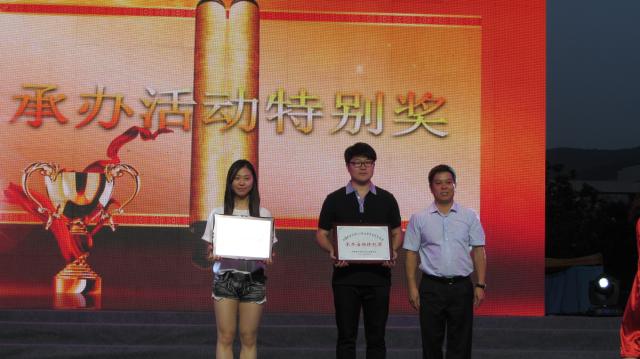 下午7时,活动正式开始。首先,学工处处长黄军利上台宣读2015年大学生文化艺术节表彰决定。随后各领导为获奖单位及个人进行颁奖。安全学院辅导员孙婷获得“优秀校园文化指导教师”,以及安全学院团委获得了本届文化艺术节“承办活动特别奖”两项荣誉。颁奖典礼结束后,韩国三级