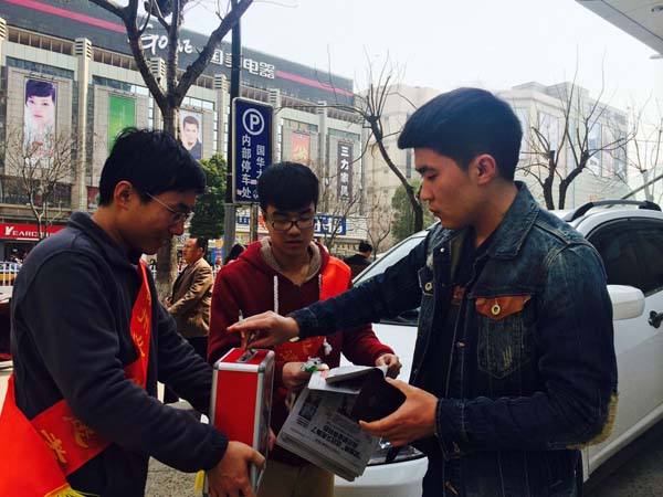 当天,志愿者们提前赶到活动现场佩戴绶带、领取报纸,爱心报纸义卖活动很快开始。义卖过程中,志愿者们积极向过往市民详细介绍活动意义,希望能让更多市民加入到爱心活动中来。许多市民对活动很感兴趣,对帮助因家庭贫困而面临辍学的学生的方式进行了详细地咨询,并且主动关注整个活动的开展情况。许多人除了购买报纸,还把钱包里的所有零钱都放进了爱心钱箱。