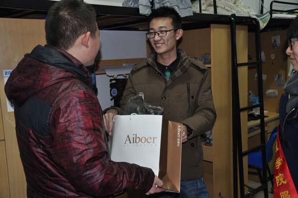 在梅苑三号楼一楼活动室举行寒衣补助活动。安全学院学生会副主席鹿通,安全学院服务分队队长齐世铭以及部分13、14级家庭困难的同学参与这次寒衣补助活动。