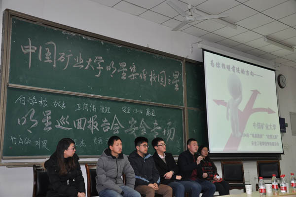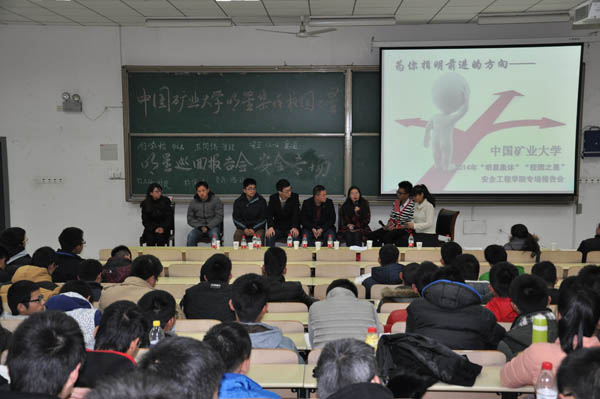 在安全学院科技文化节的背景下,为了激发同学们的学习热情,指导同学们更加合理高效地学习和生活。 12月13 日,安全学院邀请矿大“校园之星”以及“明星班级”的杰出代表在教五A107举行了一场别开生面的明星报告会。安全学院党委副书记钱雄、团委书记孙婷、辅导员倪炎、大二奋进班成员以及全体大一新生参加了此次报告会。
