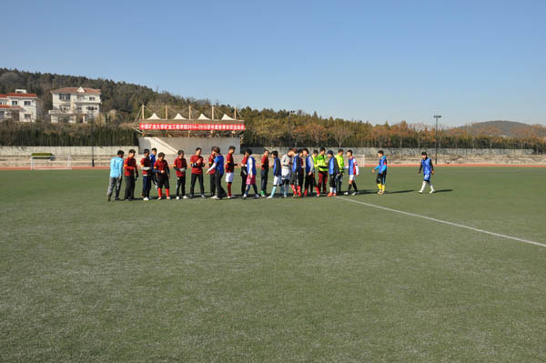 17日中午12:30,随着裁判员的一声哨响,比赛开始了。安全学院发球,双方迅速展开攻势。身穿深蓝色球服的矿业学院球员如惊涛骇浪,全力猛攻,多次逼近安全学院的底线。安全学院球员身着深红色球服,后卫与守门员精巧配合,铸成了一道铜墙铁壁,有惊无险地挡住了矿业学院一次次进攻。在裁判员的哨声中,上半场以0:0的结果结束。下半场比赛开始后,安全学院调整状态,反守为攻,场上局势更加紧张。在下半场进行到一半时,安全学院角球传中,在其他球员在门前巧妙配合下成功将球推射入门,首开记录,安全学院占据上风。矿业学院随后组织反攻,多次努力后也射进一球,追平比分。在接下来的比赛中,矿业学院在比赛即将结束之时打进奠定胜局的一球,取得了本次比赛的胜利。