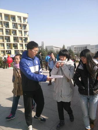 近日天气虽然转冷,但现场热烈气氛依旧不减,安全学院科创部部长崔捷带领自己的部员散发传单,向过往同学介绍活动。不少同学看到宣传后都围了上来,对活动表示感兴趣,纷纷报了名。报名一直进行到下午两点才结束,加上同学的宣传报名的同学有明显的增加,取得了很大的效果。