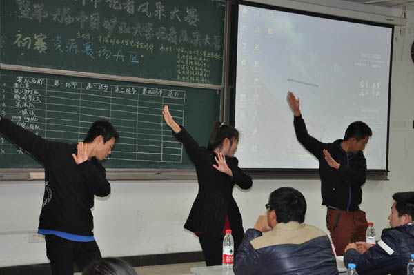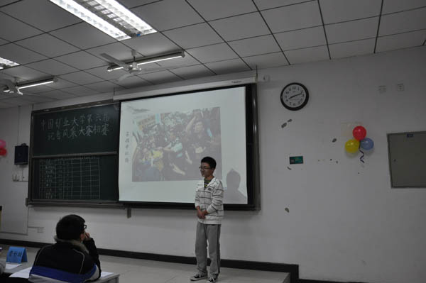2014年11月16日晚七点,第二届徐州市记者风采大赛矿大赛区于教一B301,401,402三个教室激情开战。安全学院有9名同学参加,平均分为三组,胥振组,景一组,修思琦组分别作战三个分区。