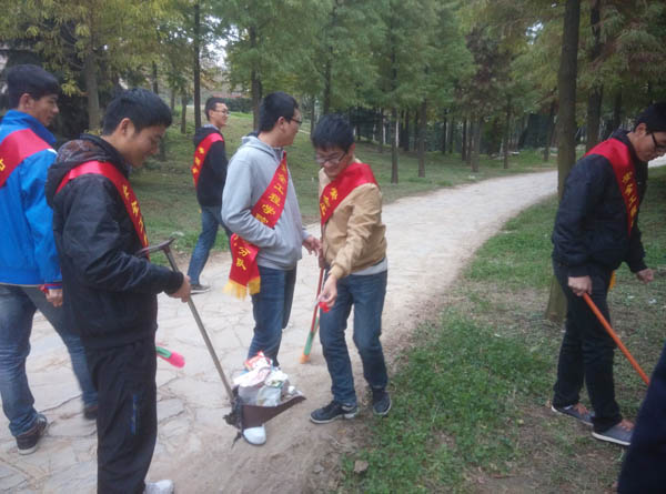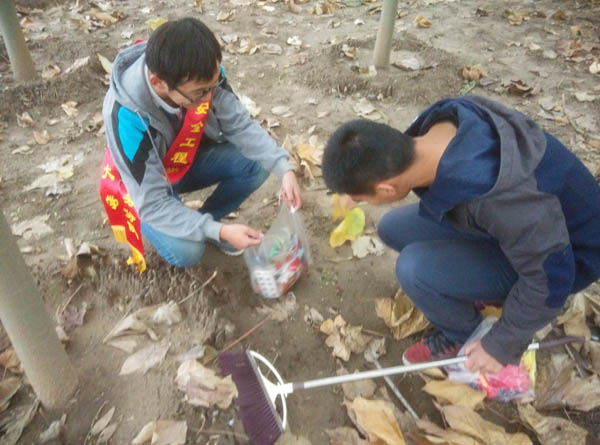 十一月的矿大校园金桂飘香,同学们纷纷踏秋怡情。为了更好的创建美丽矿大校园,还矿大学子一片富有秋韵之景。11月7日安全学院服务分队E.F组在校服务分队的组织下由郭鑫组长带队去不显山开始“创洁净校园””之行。