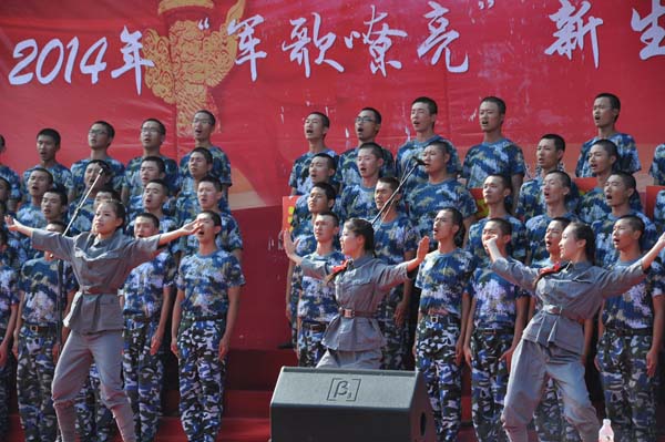 校党委武装部、校团委联合举办的2014年“军歌嘹亮”新生合唱比赛在南湖校区第二运动场隆重举行。校领导、学校相关部门和各学院负责人,全体新生辅导员和2014级新生们参加了本次活动。2014级辅导员孙婷、郑文奇、倪炎老师带领新生合唱团参加了比赛,大家以饱满的精神状态和精彩的歌唱表演,最终赢得了大家的掌声。