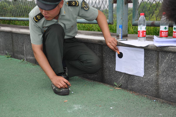 下午3时许,安全学院14级的新生军训营各排顺序依次由第三田径运动场到达第二运动场,进行射击训练。同学们完成射击训练后,便开始由教官组织选拔熟练掌握射击技能的同学参加射击比赛。射击比赛作为军训评比的一项重要内容,对于参加射击比赛队员的军事技能要求十分严格。教官将同学们分成了几个小组,利用“三点瞄准法”对同学们进行选拔。同学们需要在5米外的距离瞄准教官手里黑色纸片的中心确定白色纸片上的一点,然后教官移动黑色纸片,要求同学们仅用瞄准发出指令两次让教官将黑色纸片中心移到最初的点位,这样便相当于打了三次靶。选拔出给出三个点位距离最近的同学参加本次射击比赛。随后,一些能够熟练掌握射击技术的同学报名参加了射击比赛的选拔。同学们凝神屏气地瞄准,保持一个姿势,冷静地发出方位指令,在白纸上留下每一枪的位置。其中,有的同学打出了30环的好成绩,获得了教官和孙老师的赞扬。选拔由孙婷老师和教官共同负责,他们认真观察参赛同学的射击动作、仔细研究参加选拔的同学特点,最终定下了参加射击比赛的名单。