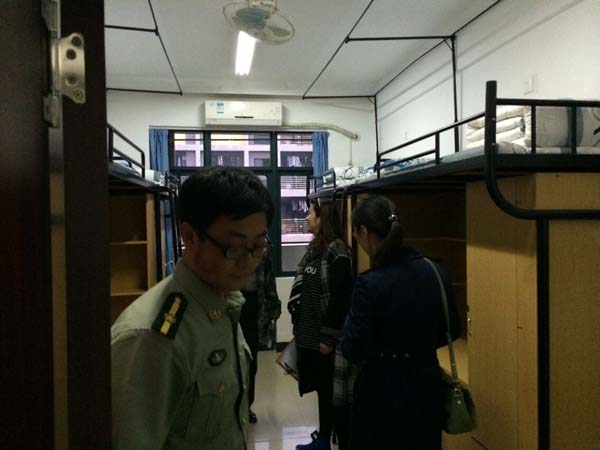 9月18日下午,矿大新生迎来了第一次军训内务突击检查,学校武装部的老师和各学院负责人及全体2014级新生辅导员组成的军训内务检查评审团对各学院新生的内务整理情况展开了细致的检查评比,韩国三级