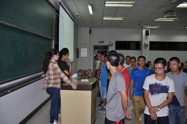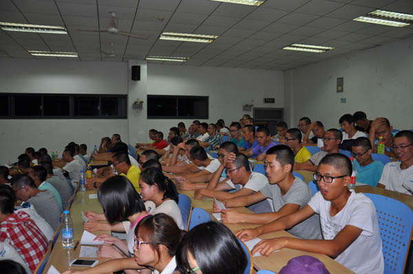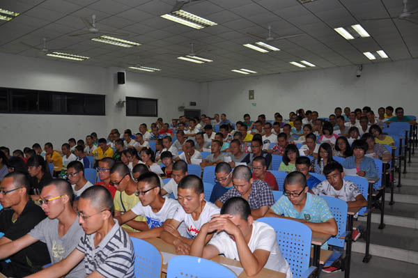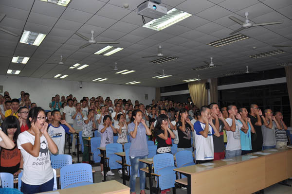 2013级新生在军训开始前学唱红歌、校歌,从而激发大家的爱国、爱校热情,使大家满怀激情地参加即将到来的军训。