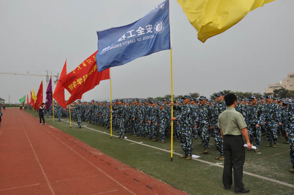 至此,2014级军训动员大会在全场热烈的掌声中圆满结束,新生的军训正式开始。古人有句话:古之立大事者,不惟有超世之才,亦必有坚忍不拔之志。军训是一个人意志的沐浴,精神的洗礼,希望安全学院14级的新生能以积极的态度面对接下来的军训,让军训来磨练自己的意志,从而可以以成熟的姿态的迈入大学,在大学里创造自己的辉煌。最后,预祝安全学院2014级新生军训取得圆满成功。