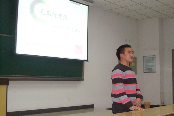 12月23日晚,由安全学院10级团总支主办的“自强不息――风雨行建路”励志讲座在教一C103顺利举行。本次讲座有幸邀请到荣获本年度“青春矿大十佳大学生”的四位美丽的女孩作为主讲,她们分别是来自文法学院社工11-1班的张栩,信电09-2班的赵媛媛,资源学院地质09-4班的温佳和管理学院会计10-3班的赵亚芝。安全学院10级辅导员李成刚老师亲临现场聆听此次讲座。